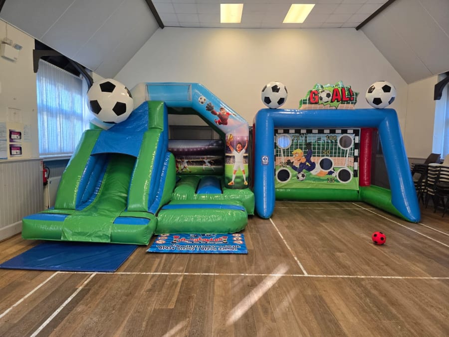 A football-themed bouncy castle with front slide that brings the excitement of the pitch to your party. Perfect for jumping, sliding, and football roleplay.