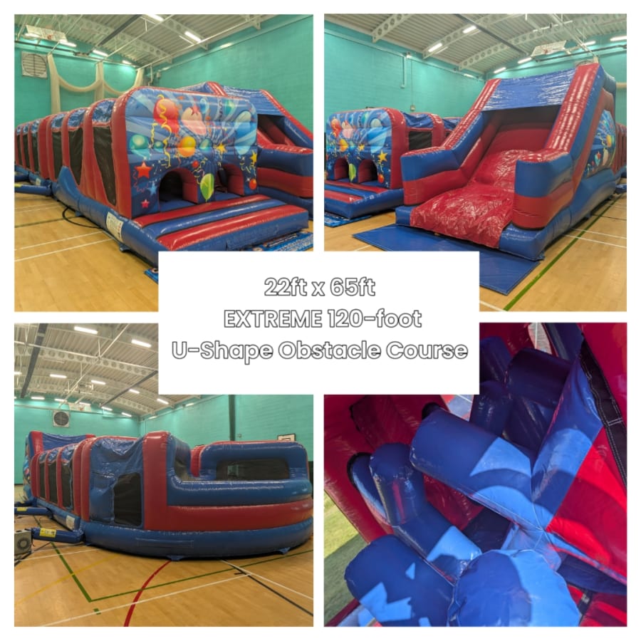 Looking to elevate your next event? Our 120ft 5-Piece Curved Red & Blue 'Party Time' Assault Course is the ultimate addition for an action-packed experience that will leave your guests thrilled and entertained!