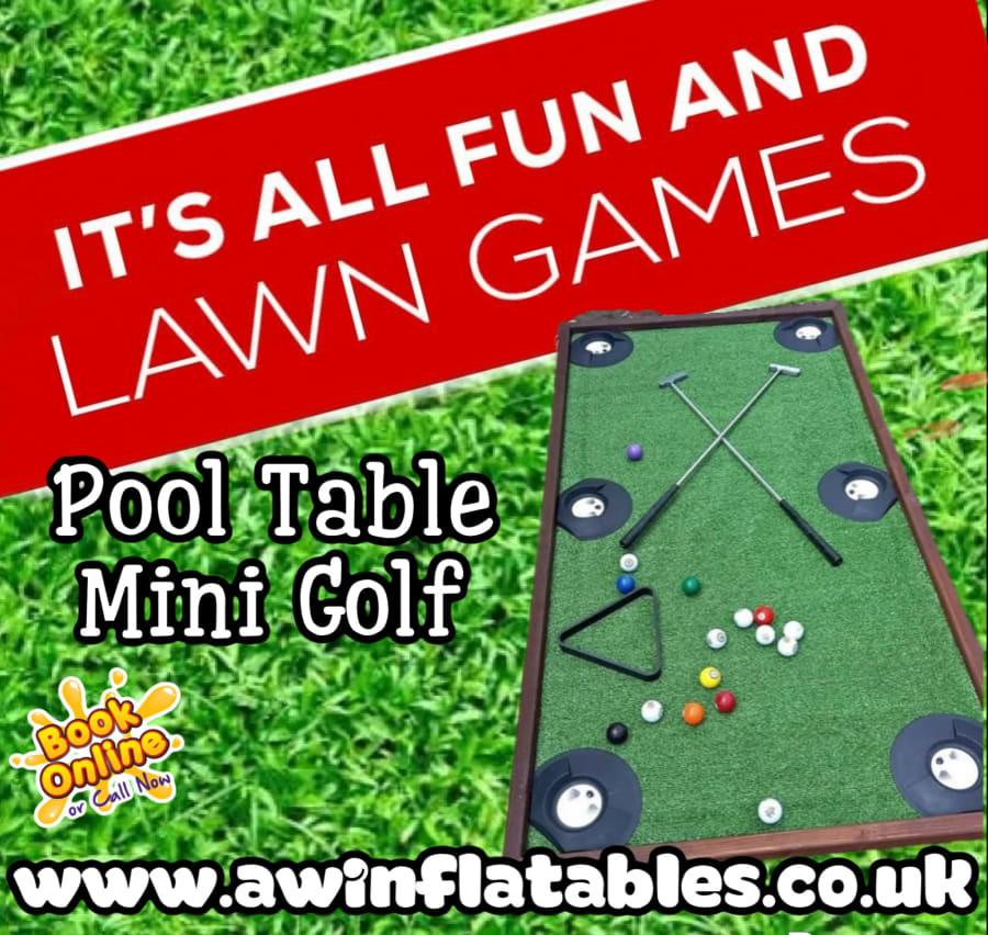 At AW Inflatables, we are committed to delivering top-quality entertainment to your event. We proudly offer our Pool Table Mini Golf service across Weston-Super-Mare, Portishead, Bristol, Bath, Taunton, Clevedon, Bridgwater, Newport, and surrounding areas. Our premium equipment ensures hours of fun and enjoyment, making your event one that your guests will never forget!