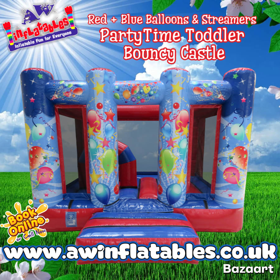 Red & Blue 'Party Time' Toddler 10x13 Bouncy Castle for Hire