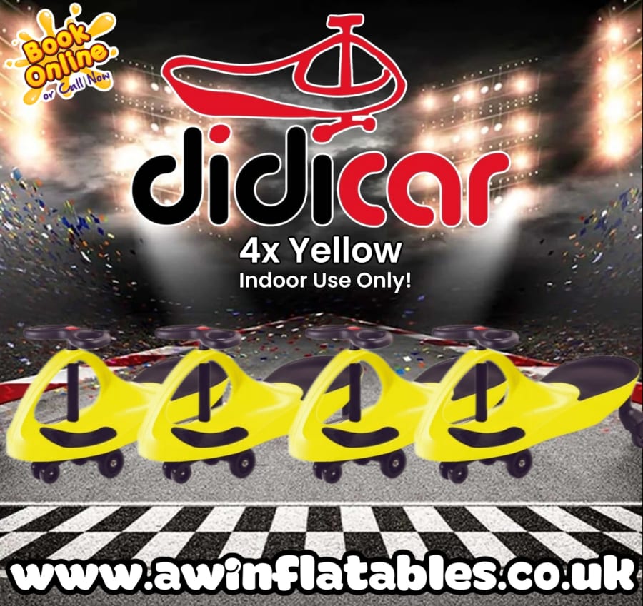 Looking for an unforgettable way to add excitement and laughter? Look no further than our Pack of 4 Yellow Didi Cars! These wacky, speedy cars are powered by simply wiggling the steering wheel and shaking your bottom, making them the ultimate source of fun for both kids and adults. Get ready for some fast-paced action, hilarious moments, and tons of laughter as your guests race to see who’s the fastest on the track!