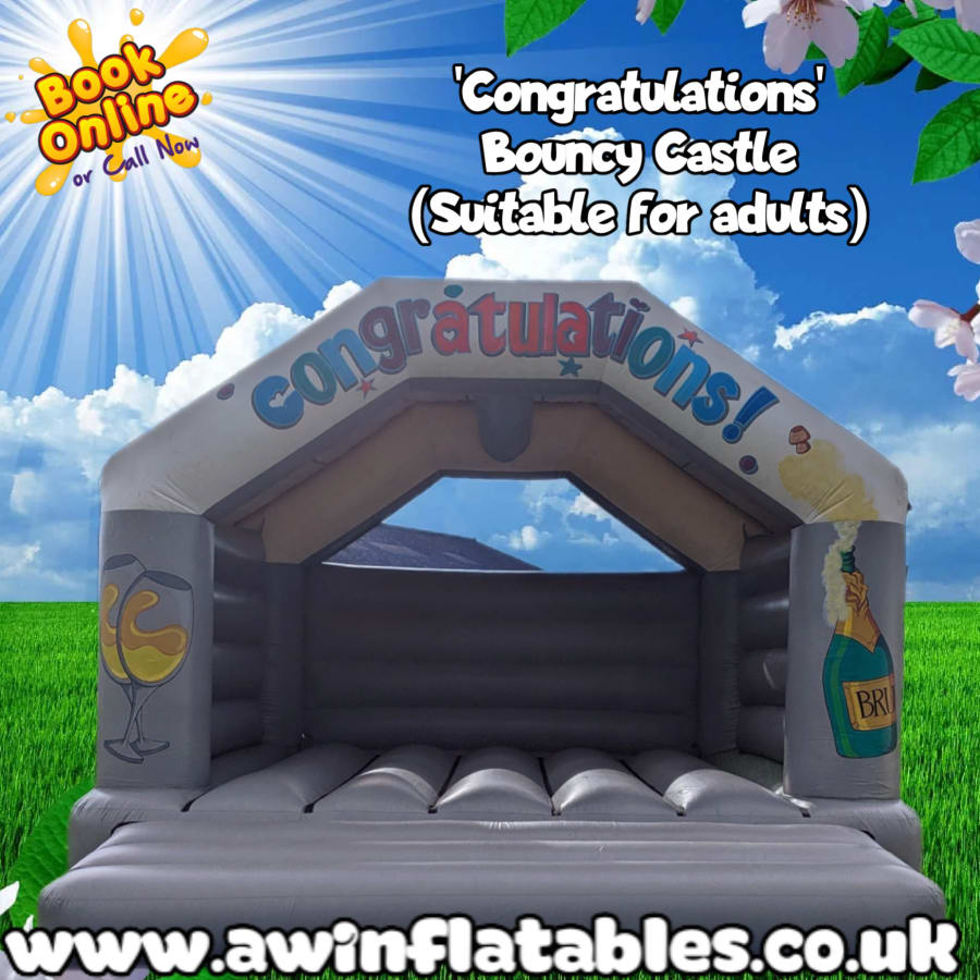 Whether it's a wedding, anniversary, birthday, or corporate event, this inflatable is sure to add a burst of laughter, joy, and energy to your celebration. Make every milestone memorable with the CONGRATULATIONS Adult Bouncy Castle.