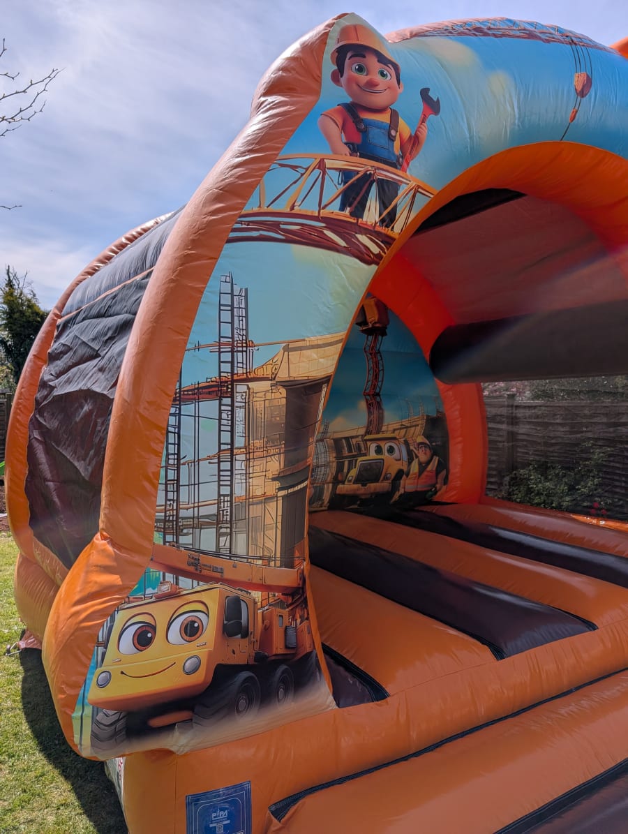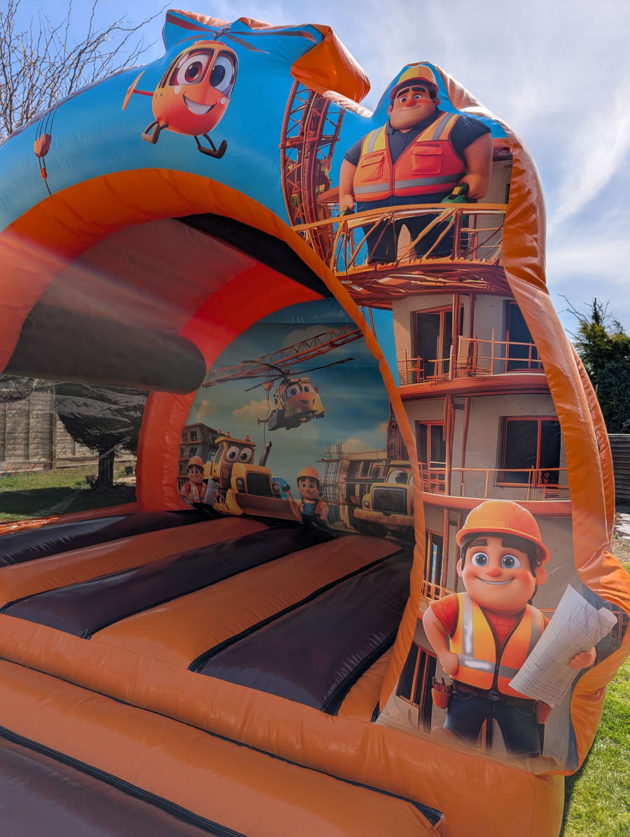Looking for a unique bouncy castle to make your event extra special? Our 12ft x 12ft ‘Construction’ 3D Bouncy Castle is the perfect choice! With its bold party theme and exciting 3D contour elements, it’s designed to capture children’s imaginations while providing hours of safe, active fun.