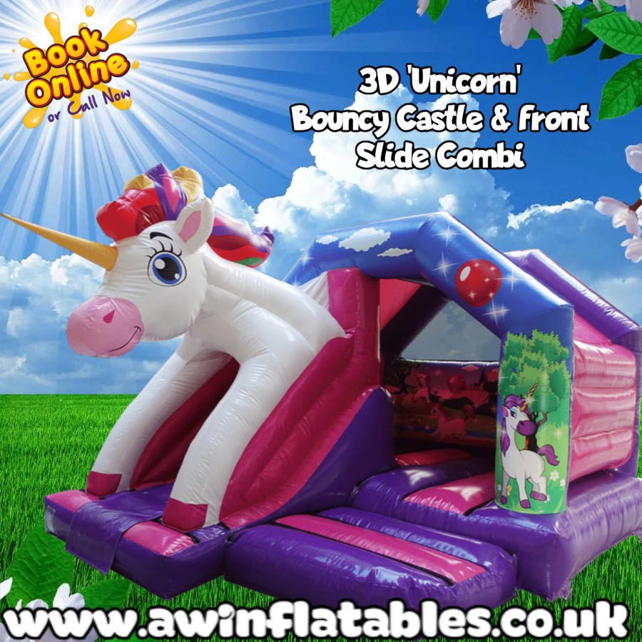 Bring a touch of enchantment to your next event with our 3D Unicorn Bouncy Castle & Front Slide. This captivating inflatable blends the excitement of a bouncy castle with the thrill of a front slide, creating a world of wonder for children. Perfect for birthday parties, school fêtes, community events, and special occasions, this magical unicorn experience promises endless fun and unforgettable memories.
