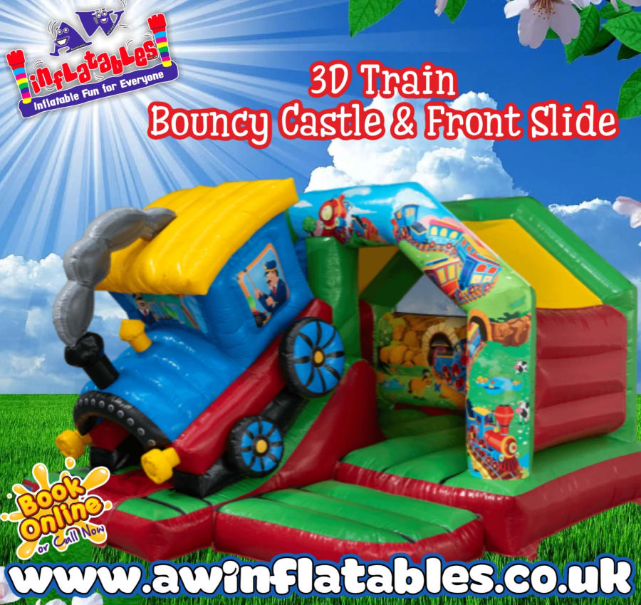 📅 Book the 15ft x 12ft 3D Train Bouncy Castle & Front Slide Today