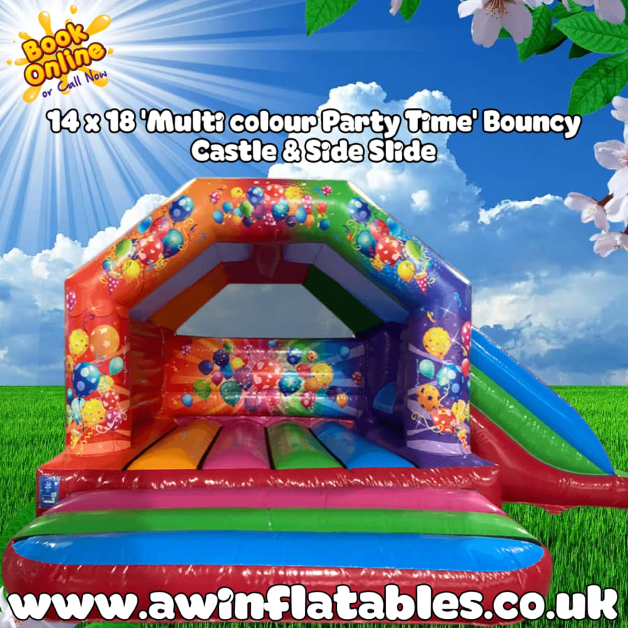3. 14 x 18 Multicoloured 'Party Time' Bouncy Castle & Side Slide