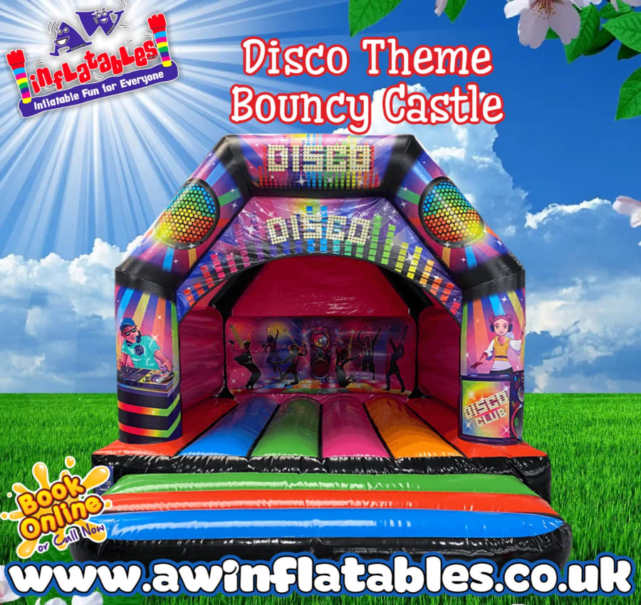 Book the 12ft x 12ft Disco Theme Bouncy Castle Today