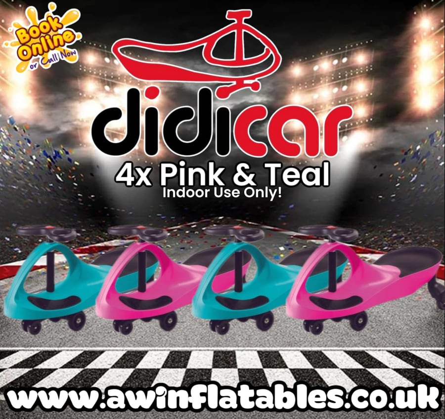 Looking for an unforgettable way to add excitement and laughter? Look no further than our Pack of 4 Teal & Pink Colour Didi Cars! These wacky, speedy cars are powered by simply wiggling the steering wheel and shaking your bottom, making them the ultimate source of fun for both kids and adults. Get ready for some fast-paced action, hilarious moments, and tons of laughter as your guests race to see who’s the fastest on the track!