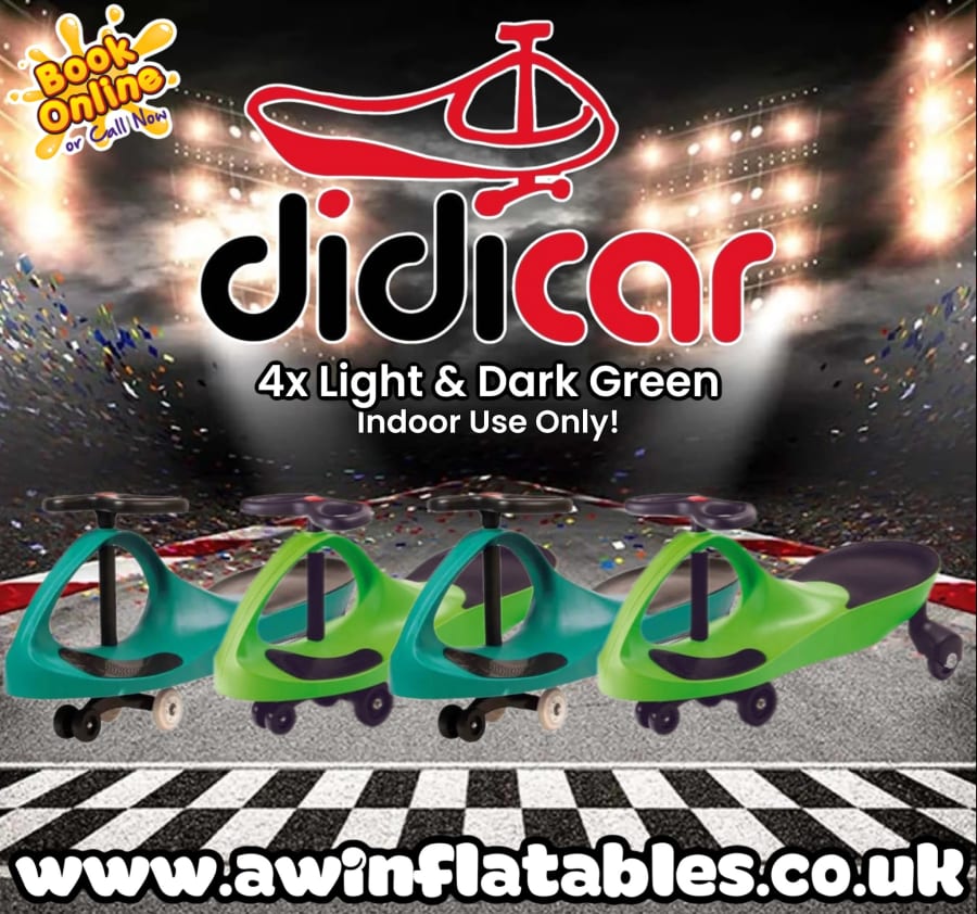 Looking for an unforgettable way to add excitement and laughter? Look no further than our Pack of 4 Light Green & Dark Green Didi Cars! These wacky, speedy cars are powered by simply wiggling the steering wheel and shaking your bottom, making them the ultimate source of fun for both kids and adults. Get ready for some fast-paced action, hilarious moments, and tons of laughter as your guests race to see who’s the fastest on the track!