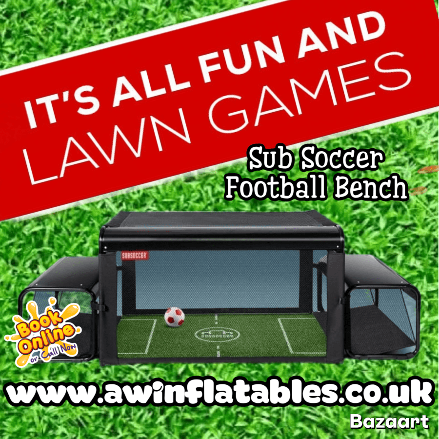Looking to add some non-stop action and excitement to your event? AW Inflatables proudly presents the Subsoccer, a sit-down football game that’s guaranteed to get everyone on their feet (but sitting down)! Perfect for those looking to bring a competitive edge and a ton of fun to any celebration. Whether it's a birthday party, corporate event, wedding, or football tournament, Subsoccer S3 is the perfect game for all ages!