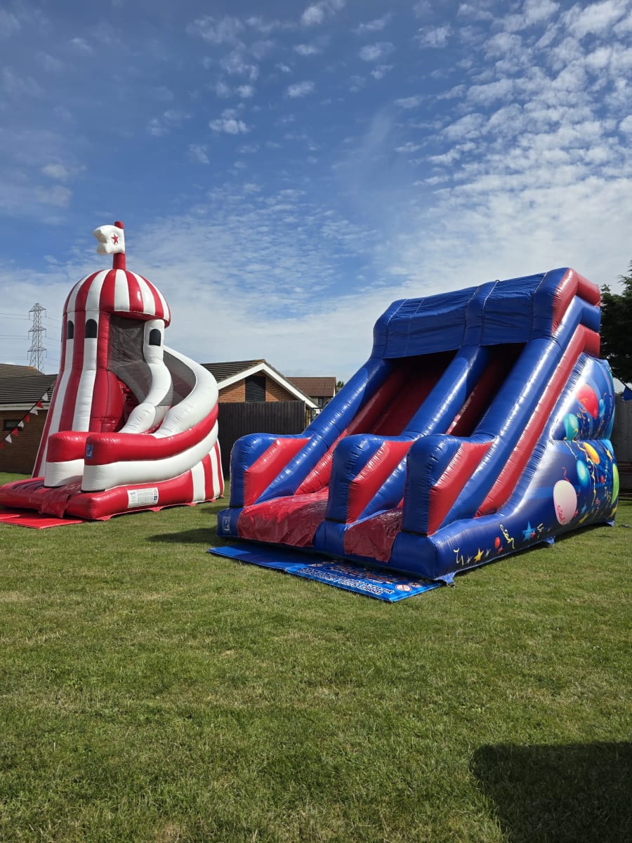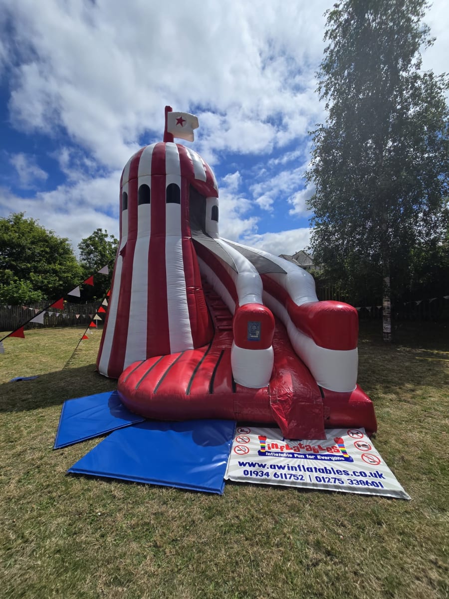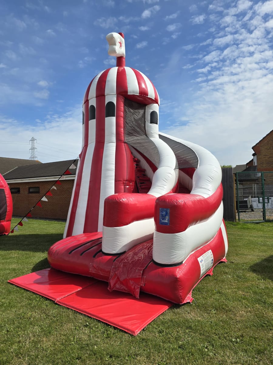 Take your event to new heights with our 18ft x 18ft Helter Skelter Slide! With a 10ft climbing platform stands at a massive 25ft high, this inflatable promises thrill, excitement, and unforgettable fun. Perfect for birthdays, school events, community fun days, or large outdoor gatherings — kids (and adults!) will love climbing up and sliding down this towering attraction.