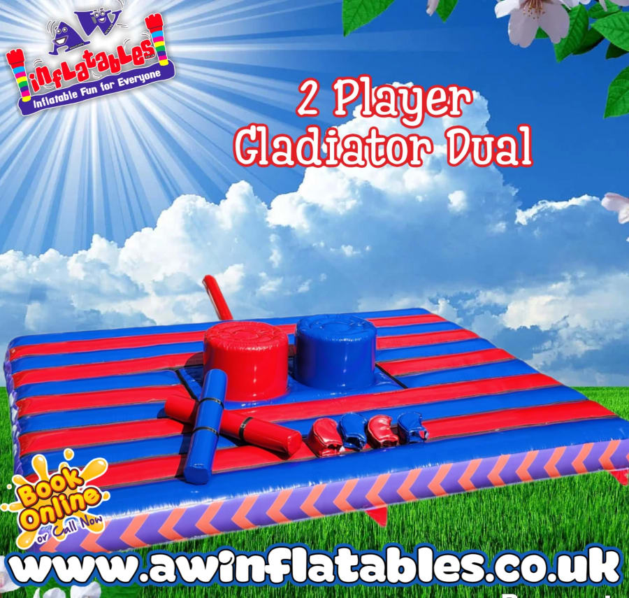 ⚔️ Think you’ve got the skills to win? Book the Gladiator Duel – Ultimate 2-Player Game today with AW Inflatables!