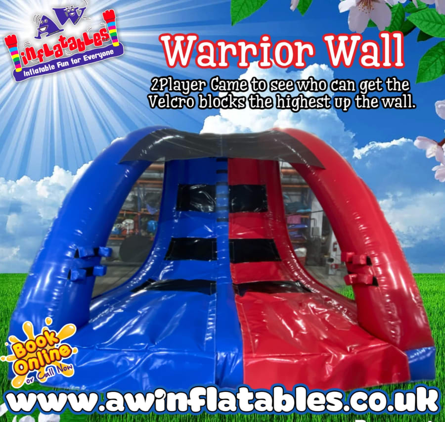 Introducing the Warrior Challenge Vertical Run Up Wall, brand-new for 2026 and exclusively available from AW Inflatables! This exhilarating 2-player attraction tests speed, timing and pure determination as players sprint and launch themselves up the wall to place their Velcro marker as high as they can.