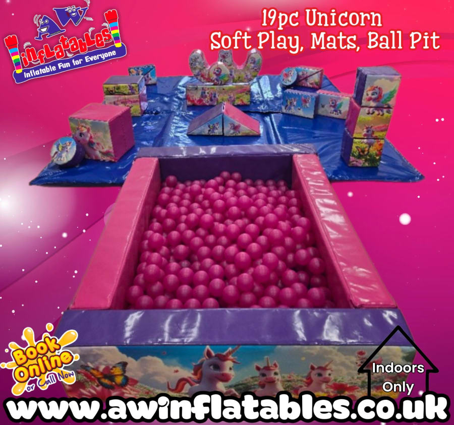 🦄 Unicorn Theme 19pc Soft Play & Ball Pit Hire – Magical Fun for Little Ones!