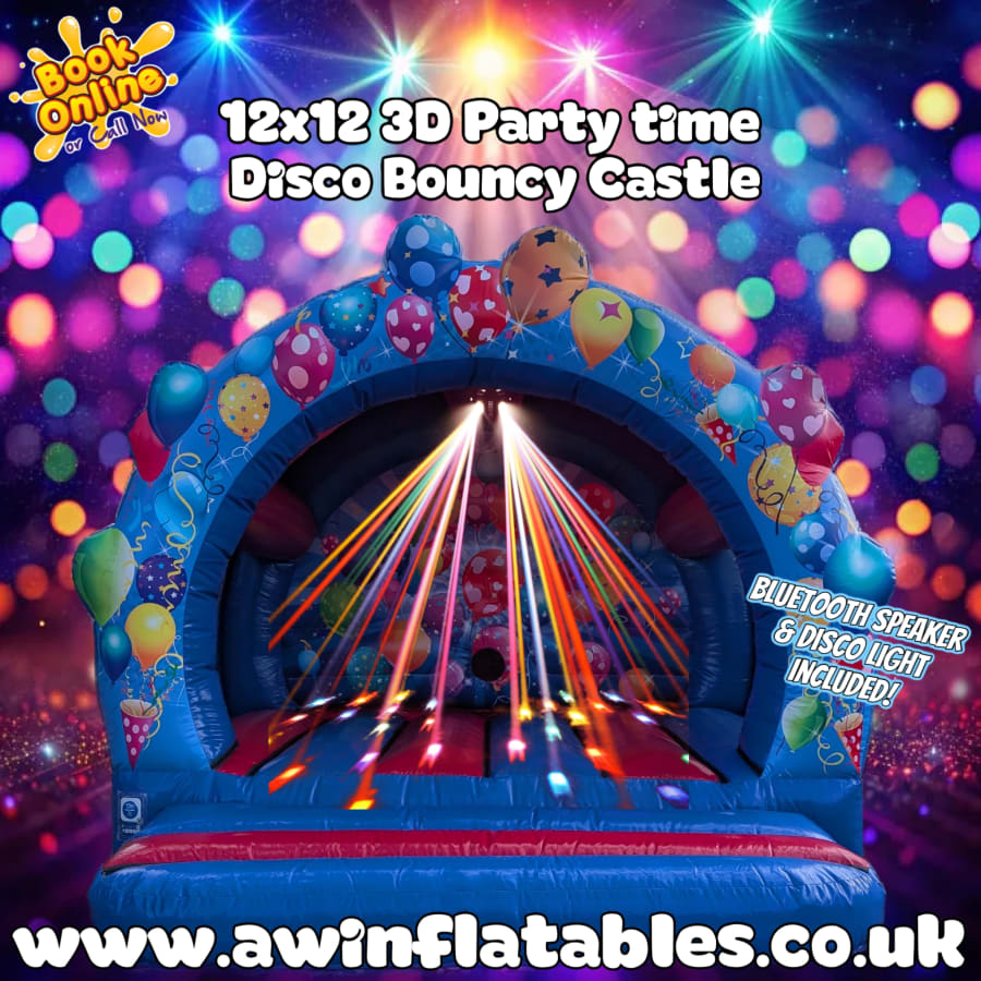 Want to make your next party or event unforgettable? Our 3D Blue & Red Party Time 12x12 Bouncy Castle is a high-energy favourite that brings colour, sound, and fun to any celebration. With its bold blue and red 3D design and party-themed graphics, it’s perfect for birthdays, school events, and weekend gatherings—indoors or outdoors.