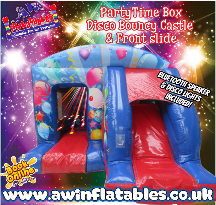 With its compact box-style design, it fits comfortably into most gardens, halls, and venues, while the front-facing slide makes supervision easy for parents and event organisers.