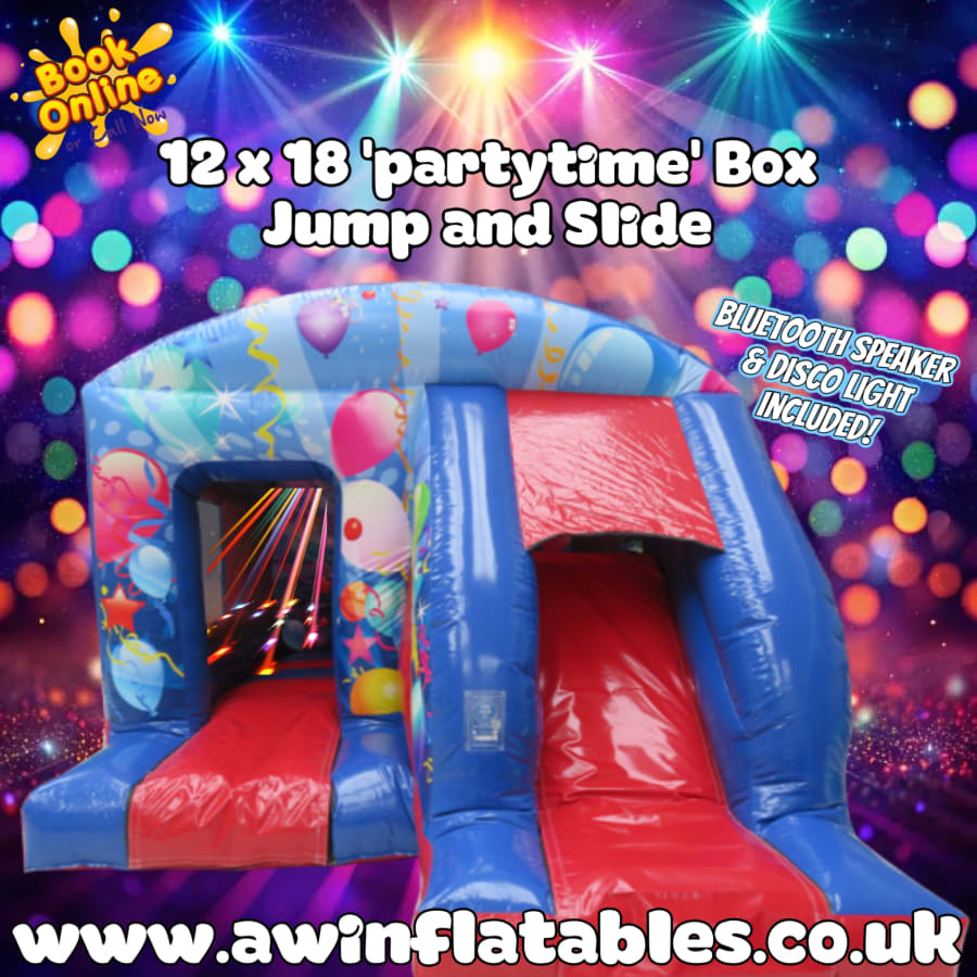 12 x 18 'PartyTime' Disco Box Jump and Slide with speaker & Lights