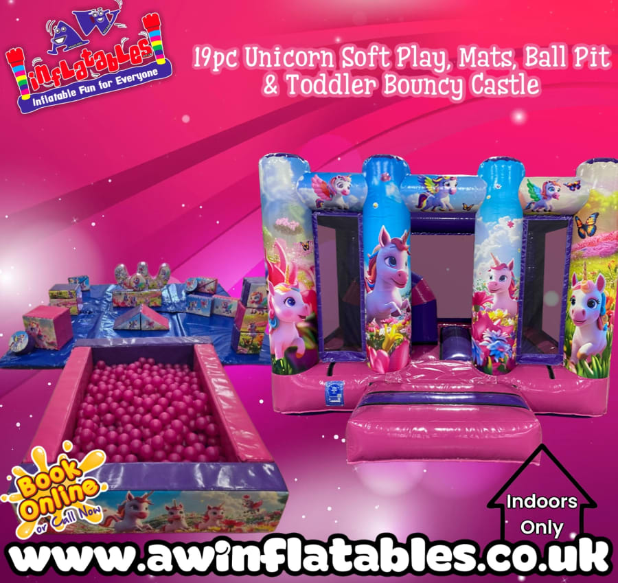 19-Piece Unicorn Soft Play Set & Bouncy Castle – Toddler Party Hire in Somerset & Bristol