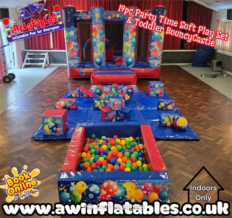 Add colour, fun, and Happy play to your event with our 19-Piece Red & Blue Party Time Soft Play Set & Bouncy Castle. This bright and cheerful package is perfect for toddlers and young children, combining classic soft play shapes with a fun party-themed bouncy castle for hours of entertainment.