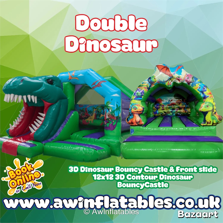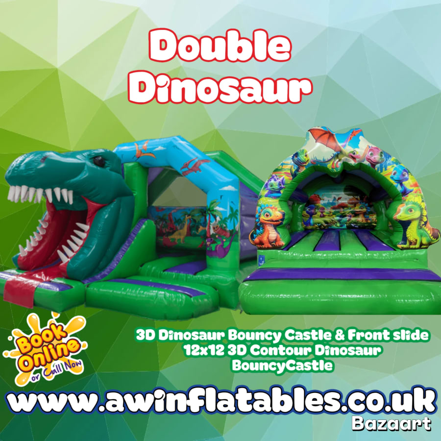 Bring prehistoric excitement to your event with our Double the Dinosaur Fun package! Perfect for dinosaur lovers, kids’ parties, school events, and family gatherings, this package combines two thrilling dinosaur-themed inflatables for non-stop jumping, sliding, and adventure.