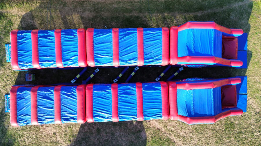 If you want the biggest and most action-packed inflatable obstacle course for your event, our Mega 6-Part 130ft Assault Course delivers an unforgettable experience from start to finish, Comes as a set of our two 65ft mega 3-part Assault courses side by side. With an incredible length and packed full of climbs, tunnels, pop-ups, and giant slides, this monster inflatable is built for high-energy fun and competitive challenges.