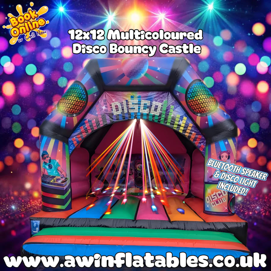 🎉 Multicoloured Disco Bouncy Castle – The Ultimate Party Experience!