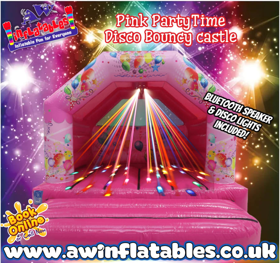 12 x 12 “Pink Party Time” Disco Bouncy Castle with Speaker & Lights – Somerset, Bristol & Surrounding Areas